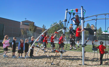 SALT LAKE CITY — In an effort to address the nation’s childhood obesity epidemic, St. Vincent de Paul School, Salt Lake City, installed a Kompan Play Structure. "Students are challenged mentally and physically on the new equipment," said Carol Barman, St. Vincent School advancement director. "We were striving to provide physical activity options for our students to engage in during recess, as well as before and after school. "The St. Vincent administration realized it was important as a school to provide the necessary means for its students to increase their physical activity, and the new playground equipment would help," said Barman. "Studies have shown exercise helps in a student’s overall well being, concentration, and stress reduction." Barman said the playground renovation was made possible through a grant from the R. Harold Burton Foundation. In addition, proceeds from the school’s giftwrap fund raiser were used to pay the balance on the new equipment. The majority of the school’s old playground equipment dated back 40 years and last year the swing hinges broke said Barman. As the school began looking into replacing the swings, they found it necessary to update their playground equipment to make it safe and provide structures that allowed students to be more active. The school formed an ad-hoc committee of parents and teachers, then started researching information about different play structures. "Our needs were met with the Kompan Play Structure because it helps develop gross motor skills, flexibility, encourages socialization, and provides students with increased exercise options," said Barman. "The renovation process began in June when the surface area was measured for the new equipment and the 40-year old spider structure and swings were torn down." Barman said St. Vincent is committed to keeping the students physically active, thus helping curb the childhood obesity epidemic. The National Center for Health Statistics reports the percentage of elementary-age children who are considered obese has doubled since 1980. Obesity is more than just a cosmetic concern. Short- and long-term physical and psychological concerns can result from childhood obesity.