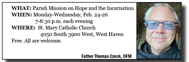 WEST HAVEN — A parish mission on incarnational theology at St. Mary Parish in West Haven is open to all members of the Diocese of Salt Lake City. The mission, “Pilgrims of Hope, Incarnational Theology” will be presented by Father Thomas Czeck, OFM Conv. through the prism of Franciscan spirituality.