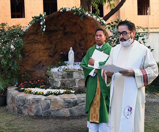 “Fr. Joshua worked with his hands every day” to construct the grotto, which is built of cement and rock, and has a small water feature, said Fr. Rogelio Felix-Rosas, pastor of St. Thomas Aquinas Parish, who blessed the grotto on Sept. 13.
