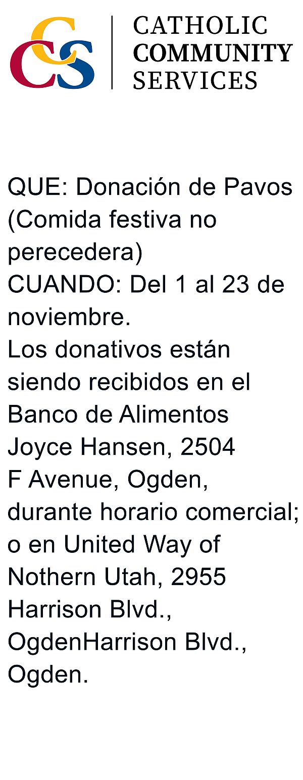 Todos los donativos están siendo aceptados en las oficinas de CCS en Ogden, así como en las oficinas de United Way en la misma ciudad.