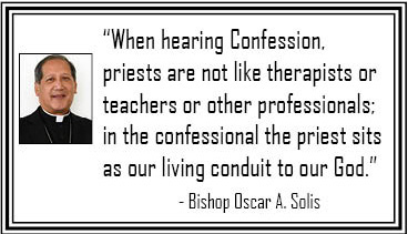 When hearing Confession, priests are not like therapists or teachers or other professionals; in the confessional the priest sits as our living conduit to our God. Before granting absolution, a priest hearing a confession of criminal wrongdoing may require the penitent to self-report to law enforcement, seek counseling, offer to talk with the person outside of the confessional and accompany him or her in the act of self-reporting, or require some other similar act of restorative justice through penance.