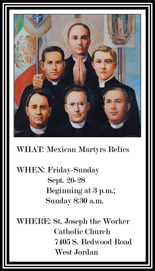 WEST JORDAN — Relics of several Mexican martyrs will be on display at Saint Joseph the Worker Catholic Church in West Jordan Sept. 26-28.