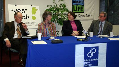 SALT LAKE CITY — "There are so many myths and misconceptions surrounding organ and tissue donations that we have named April ‘National Donate Life Month,’" said Alex McDonald, public education director for Intermountain Donor Services (IDS). "Many people are concerned because they mistakenly believe organ donation violates their religious beliefs," said McDonald. "We encourage people to talk to their religious leaders about donation." IDS sponsored a media event at their office April 17, in which four religious leaders explained their particular religious views and addressed those misconceptions. "The Catholic church views organ donation in a favorable light," said Deacon Scott Dodge of the Cathedral of the Madeleine, who serves as a chaplain at LDS Hospital. "According to the Catechism of the Catholic Church, ‘Organ donation is a noble and meritorious act and is to be encouraged as an expression of generous solidarity’ (2296). "Through organ donation, we foster life," said Dodge. "For it to be morally acceptable, the organ donor must personally give explicit consent by signing up as a donor. Individuals are encouraged to express their consent to family members before their death, because in the end the family of the deceased must also consent to organ and tissue donations." Addressing participants in the First International Congress of The Society for Organ Sharing, June 20, 1991, Pope John Paul II commented, "In effect, transplantation presupposes a prior, explicit, free and conscious decision on the part of the donor or of someone who legitimately represents the donor. In this sense, the medical action of transplantation makes possible the donor’s act of self-giving, that sincere gift of self which expresses our constitutive calling to love and communion." Scott Parker, who represents the LDS Church on the Salt Lake Interfaith Roundtable, said the decision is a personal one made by the individual or the deceased member’s family. Elaine Emmi, chairwoman of the Salt Lake Interfaith Roundtable said organ donation is something we should consider so when a death occurs, we will be ready to act. "As a Quaker, we do not have set doctrine, we leave the decision up to the individual," said Emmi. "I have a medical condition, so I am certain no one would want my organs, but I plan to donate my body to science for research through the University of Utah." "In Jewish tradition, there is great sanctity placed on the care of the body after someone is deceased," said Rabbi Tracee Rosen of Congregation Kol Ami. "We do not believe in cremation or open casket viewing, we believe in a process of ritual cleansing of the body, and it is something sacred that all parts should be buried. "So from that long-standing tradition, a lot of people have the misconception that Judaism would see organ donation as some kind of mutilation of the deceased," said Rosen. "Jewish tradition is clear across all the major denominations that the opportunity to use tissues or organs in order to save somebody’s life or enhance their quality of life is, in fact, encouraged. Organ donation does not affect proper burial of the rest of the body." Russell Baker, pastor of the United Church of Christ in Bountiful, said his denomination strongly encourages donation, but the decision is left up to each individual. "I have indicated on my driver’s licence that I want to be a donor," said Baker. "It is very clear to my family I want to continue an act of grace even in my death, and I can do that through organ donation." According to IDS, 20 people die each day waiting for a life-saving organ transplant, amounting to 8,000 unnecessary deaths each year. More than 80,000 people are waiting for a life-saving transplant, and one donor can save up to nine lives through organ donation, and enhance the lives of 50 people through tissue donation.
