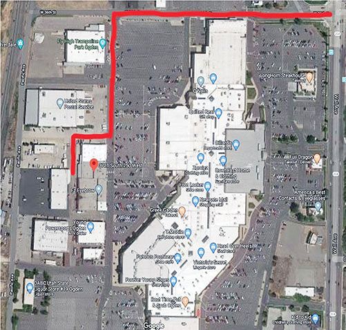 3. Drive to the back of the building following the route shown on the map. To maintain social distancing, food boxes will not be distributed from the front office.