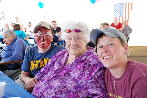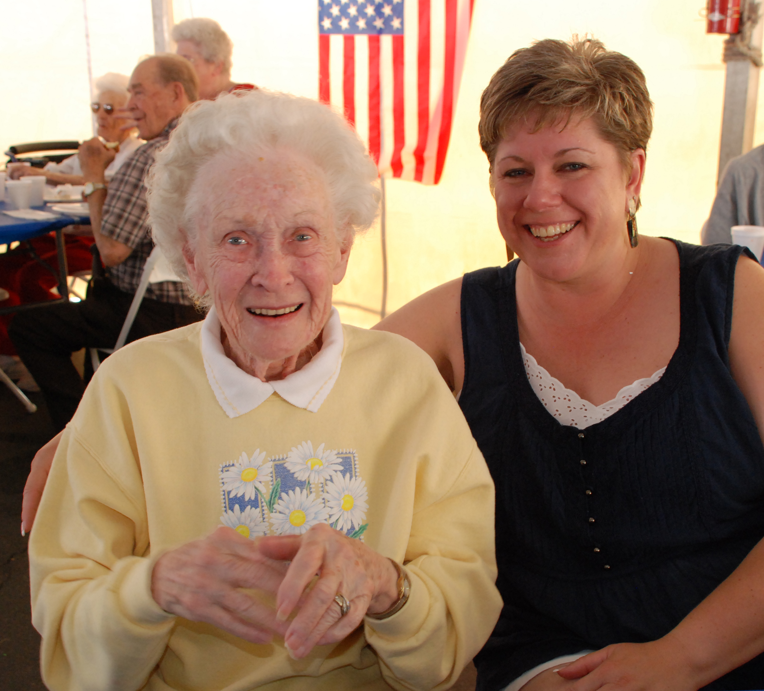The Residents of CHRISTUS St. Joseph Villa in Salt Lake City welcome their families to the annual summer picnic held Aug. 25, in the Villa’s parking lot. Planned by Villa staff and residents, the picnic offers food, entertainment, and time for families to gather with residents in a festive setting. Above left, Dotty Turner, 89, couldn’t help clapping along with the World War II-era music sung by members of the Villa staff. Turner shares her enjoyment with her granddaughter, Heidi Jensen. Above right, Spiderman, a.k.a. Scott Ebert and Pat Ebert join in the spirit of fun with their grandmother, Grace, Ebert, 90. Entertainment included a jazz band made up of members of the U.S. Armed Forces. Staff members sang along with the Andrews Sisters karaoke style. IC photos by Barbara S. Lee