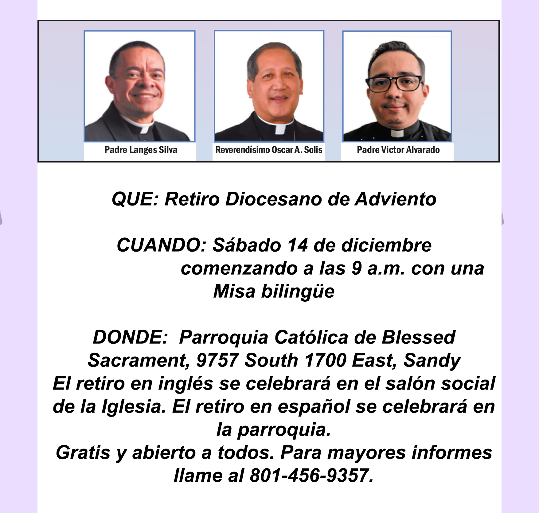 SANDY — El Retiro Diocesano de Adviento de este año con el tema ‘Preparando para ser Peregrinos de la Esperanza’, se realizará el 14 de diciembre en la parroquia Católica Blessed Sacrament en Sandy.