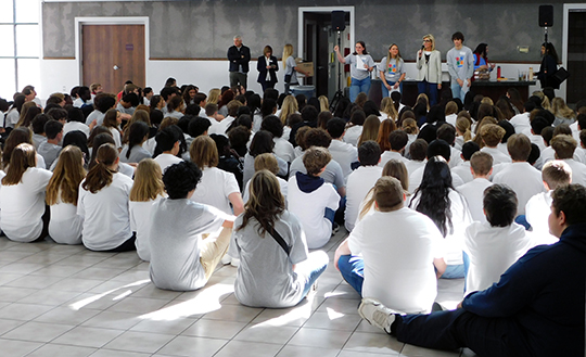 “Just because we are plugged in it doesn’t mean that we feel seen and heard,” they told the eighth-graders, and encouraged them to talk to each other and share their thoughts.