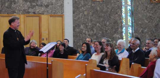 The Most Rev. John C. Wester, Bishop of Salt Lake City, led a retreat for the elect of the diocese on March 23 at Saint Ambrose Catholic Church in Salt Lake City. His theme was the Pascal Mystery. Catholics, he said, suffer and die a real death in Christ, but then rise with him in a new life. IC photo/ Marie Mischel