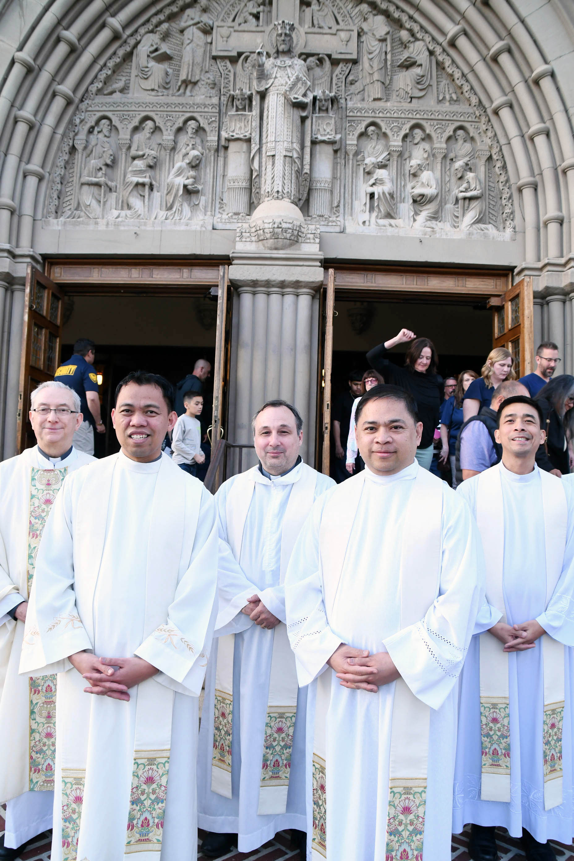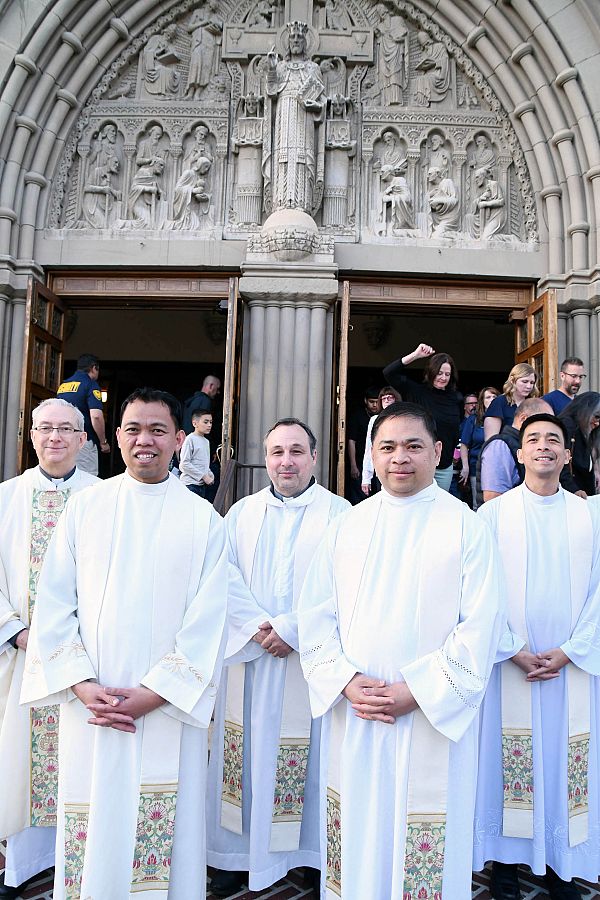 Father Bruno Rampazzo, Superior General of the Congregation of the Rogationists of the Heart of Jesus, visited Utah in early April and met with the two members of his order who minister in the Diocese of Salt Lake City. Rogationist Father Carlos R. Guzman is assigned as temporary administrator of Blessed Sacrament Parish in Sandy, and Rogationist Father Ryan Jimenez is the parish’s parochial vicar; he also is a hospital chaplain. While in Utah, Fr. Rampazzo joined the diocesan priests at the Chrism Mass, celebrated April 10 at the Cathedral of the Madeleine. Shown from left are Fr. Rampazzo; Fr. Jimenez; Fr. Brizio Giovanni Greco, the Rogationists’ general treasurer; Fr. Guzman; and Fr. Orville Cajigal, the order’s provincial superior.