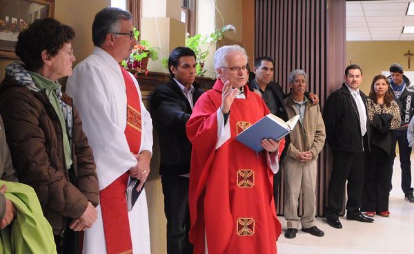 HEBER — A standing-room-only crowd gathered for Mass at Saint Lawrence Mission on May 27, not only to celebrate Pentecost but also in memory of Deacon Aniceto Armendariz, who was murdered seven years ago. "He was an example to us of the faithful in God in his ministry," said Father Stanislaw Herba, pastor of the mission as well as Saint Mary of the Assumption Catholic Church in Park City. Deacon Armendariz was shot to death on Sept. 25, 2005 as he returned from Mass in Park City. His wife, Alma Armendariz, suffered minor injuries when the vehicle they were in crashed and rolled. Both worked for Holy Cross Ministries; the couple had four children. In 2007 two men were sentenced for the deacon’s murder. Prosecutors said the killers were hired by a third party who mistakenly believed Deacon Armendariz was a police informant. "Deacon Aniceto was a devoted husband and father, one of the finest people I know, and he died as a martyr to the faith," said Deacon Tom Tosti during his homily prior to the dedication of the fellowship room at St. Lawrence Mission. The two deacons became friends after they started commuting together to the deaconate formation classes in Salt Lake City 13 years ago, Deacon Tosti said. To help learn each other’s language, during the commute, Deacon Armendariz would speak only in English and Deacon Tosti would speak only in Spanish, and "we would correct each other," Deacon Tosti said. "The differences in our languages were not important because we both knew the message we were hearing – that message was the word of God ... and even though we couldn’t understand all the words, we understood the message." The two were ordained deacons on Jan. 24, 2001. All of the rooms at St. Lawrence Mission serve several functions; the fellowship hall is no different. "Here the young people are going to learn of their Catholic faith, and adults will deepen their commitment to live as Christ has taught us," Fr. Herba said during the dedication ceremony. "We pray that the Word of God may always echo from these walls." Alma Armendariz said Frank Lesar, Grand Knight of the Saint Mary of the Assumption Knight of Columbus Council, asked her some time ago for permission for some sort of memorial to her husband, but she was surprised at the room dedication. "I’m very emotional," she said after the dedication. Alma Armendariz began working with Holy Cross Ministries in 1999, and her husband "started helping me in his spare time," she said, adding that he worked construction to support the family. It wasn’t until he began the deaconate formation program that he took a job at Holy Cross Ministries, where among other tasks he served as director of the driver’s license program. He would help immigrants from the preparation of the test up through the driving portion, Alma Armendariz said. "He took people from the beginning to the end. He never left people in the middle of anything. It was one of his accomplishments." The Knights Council organized the dedication of the room – which included a fresh coat of paint for the walls – because they wanted to commemorate Deacon Armendariz, Lesar said. "To us he was not only our deacon, our friend, he was our fellow Knight.... I know how much he has meant to this parish, to this mission. English-speakers or Spanish- speakers, it didn’t matter. We always understood what Aniceto meant."