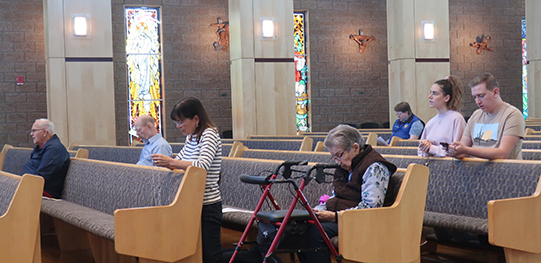 St. John the Baptist parishioners pray the rosary on Oct. 16, the feast day of Our Lady of Fatima, at their church. Led by members of the Knights of Columbus from the St. Theresa of Calcutta Council, they recited special prayers dedicated to Our Lady of Fatima along with the rosary for the intention of the healing of our nation and the world.