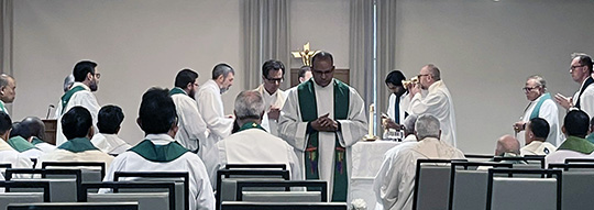 MIDWAY — Los sacerdotes que realizan ministerio en la Diócesis de Salt Lake City se reunieron para la convocación de clero de otoño del 7 al 10 de octubre en el hotel Homestead Resort en Midway, en donde compartieron camaradería y escucharon varias presentaciones como parte de su formación continua.