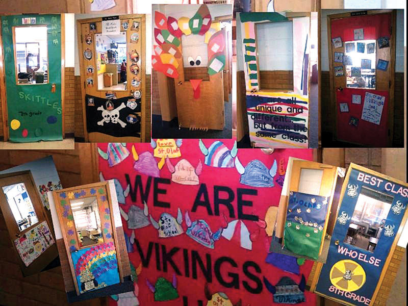 BOUNTIFUL — Saint Olaf School concluded Red Ribbon Week with a Class Spirit Day during which each class chose colors to wear for the day. Discussion took place about the Diocesan Door of Faith poster and how each door represented a community of faith. Classes were to design and decorate a door that in some way reflected who they are as a community. The students brainstormed ideas and each class came up with a unique portrayal of themselves. The students enthusiastically participated and stated that it was one of the best activities ever. The second grade decorated their door with a poster featuring a collage of wild animals because they are "wild about second grade." The first grade door was decorated as a turkey with "thankful feathers." The sixth-graders drew their own portraits depicting themselves as scoundrels. And if anyone asks who the best class is, the eighth grade door answers, "Who else, but us."