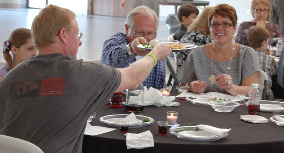SALT LAKE CITY— Family members and faculty of Saint Vincent de Paul Parish and School held a family Seder on April 3, remembering that Jewish people have commemorated Passover with this meal since the time of Moses. The ritual Passover feast recalls the freeing of the Israelites from slavery in Egypt. Jesus and his apostles celebrated a Seder meal at the Last Supper, which Catholics commemorate on Holy Thursday. "More than 3,800 years ago people used to share this type of meal," said Monica Howa-Johnson, a member of the St. Vincent school board, which helped organize the Seder. When Jewish people prepare this meal, it is a kind of thanksgiving celebration; they clean their houses, takeout their best china, and put on fancy clothes. "They work hard for the meal, said Howa-Johnson, who presented the ceremonial plate, which is a large plate on which a boiled egg, a lamb shank bone, horseradish, parsley or celery and salt water in a small bowl are placed. For a traditional Seder, each table should have one ceremonial plate. The table is covered with a white cloth. At the head of the table are three matzot (unleavened bread) covered with a napkin or a special ceremonial cover. A pillow is set at the back of one chair in which the leader of the Seder will sit, symbolizing the luxury of reclining at table, which the Hebrew slaves didn’t have. A pitcher of water, a bowl and towel for ritual washing are present as well. "We also have a bottle of wine and grape juice for the kids on each table; every time that we are blessing and making a promise, people will raise their cups together," said Howa-Johnson, referring to the tradition of four promises and four cups, which is a reminder that God made four promises to Moses. "We remember these four promises at Passover as we drink four cups of wine," she said. Mark Longe, principal of St. Vincent school, was in charge of the blessing of the wine as well as asking for God’s blessings. "The cup is a symbol of joy. Let us drink this and be reminded of the joy which is ours as a result of our salvation…. Blessed are You, O Lord our God, King of the universe, who creates the fruit of the earth," said Longe. Candles also are lit during the Seder. "The mother or woman of the house lights the candles as a representation of when Jesus was a boy growing up and Mary, who would have lit the candles for their Passover Seder," Howa-Johnson said.