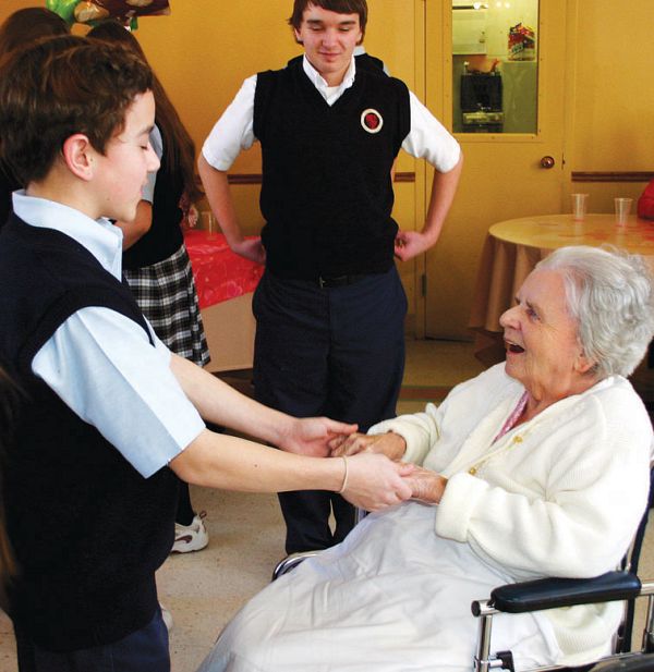 SALT LAKE CITY — ‘Stay in school and get an education,’ was the most common advice given by seniors for the young people of today. Some seniors from Trinity Care Center in Salt Lake City traveled to Willow Wood Care Center South Salt Lake to celebrate Valentine’s Day with the eighth-graders from Saint Vincent de Paul Middle School Feb. 8. Fawn Williams, Trinity Care Center recreation director and Jaimie Post, Willow Wood activity director planned the Valentine dance. "We thought it would be a good opportunity for the seniors to interact with the youth because they really enjoy the young kids," said Post. "I also think it is important for the youth to get to know the seniors because they have a lot to offer to the world today in terms of life lessons and experience." Each Saint Vincent de Paul Middle School class visits a care center once a month as a service project. "We do this in following the charism of St. Vincent de Paul, who reached out to those in need," said Gary Green, St. Vincent de Paul vice principal. "The eighth-graders visit the seniors at Willow Wood Care Center. The seniors there don’t seem to have many visitors." Shelly Dalton has been a resident at Willow Wood for eight years and enjoys the kids. "I love to have them come and visit us," she said. "My advice would be for them to be honest and keep their integrity." Jackie Paton, a senior from Willow Wood, said it’s good for the kids to realize seniors need entertainment. "We have activities here, but it’s nice to see the young people because their smiles brighten our day," she said. Judy Familiar enjoys the students coming to sing and play bingo. "I think it helps them to see how people get when they get old," she said. "Maybe they will go into the field of geriatrics to help older people, and see that older people aren’t to blame, it’s just life. They should stay in school and get an education because that is how they will succeed in life, and they should be nice to everybody because it’s getting to be a mean old world out there. The more they work together the better it will be." Familiar is a retired bank teller and moved into Willow Wood in November of 2010. Karen Buckley agrees the students should get an education, follow all the rules and grow up and make something of themselves. Evelyn Gillmore’s advice would be for the youth not to start a family as young as she did. She had the first of her six children when she was 16. Although not a senior, Cori Bunnell-Brown, 43, is at Willow Wood. She has end-stage liver disease and she continues to drink, so her advice to the youth is that it’s OK to just say ‘No,’ she said. "My 14-year-old son told me he recently went to a party and said ‘No’ when he was offered a beer. He was proud to tell his friends he refused the beer because his mother is dying of liver disease. I would also tell them to always be honest with their parents because I find the honesty I have with my kids allows us to have trust between us." "The students recognized the value in interacting with the seniors," said Green. "In this particular care setting there was a wide spectrum of severity, but the students did very well."