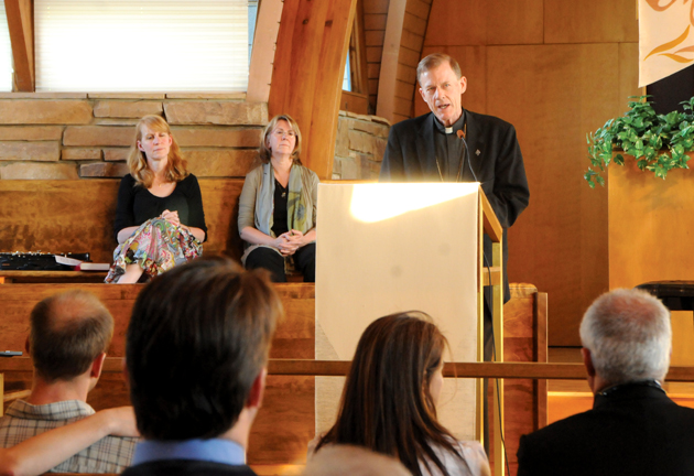 SALT LAKE CITY — Líderes de las comunidades cristianas, judías y musulmanas se reunieron el 11 de mayo para orar por los migrantes. "Esta tarde, en medio de un debate nacional, nos reunimos no para debatir sino para reunirnos para orar", dijo el Reverendo Steven Klemz de la iglesia Evangélica Luterana, en donde se llevó a cabo el servicio. El reverendo llamó a orar para que el debate migratorio sea revalorado para que los Estados Unidos como nación se transformen de miedo a fe a una nación en donde las personas vivan en justicia y paz. Entre los participantes en el servicio estaban el Rev. Curtis L. Price de la iglesia Bautista de Salt Lake City; el Rev. Dr. Pablo Ramos, Canon de los ministerios latinos y vicario de la Iglesia Episcopal de San Esteban; el Rev. Padre Elias Koucos de la iglesia Ortodoxa griega del profeta Elias Greek; Betty Yanowitz, representando a la congregación Kol Ami del Rabbi Ilana Schwartzman; Immam Muhammed Mehtar del centro Islámico Khadeeja y la sociedad islámica del Great Salt Lake; el reverendísimo John C. Wester, obispo de la diócesis católica de Salt Lake City; y Norma Klemz de la iglesia evangélica Luterana Zion. El obispo Wester se dirigió a los presentes. "El tener un evento de varias religiones, por si mismo es un tributo a la migración; muestra como varias personas diferentes se unen y trabajan juntas y son hospitalarias y oran, así es que es una especie de modelo para lo que hoy oramos". En sus remarcaciones, el Obispo enfatizó que las personas de fe no solo deben defender el cambio, deben vivirlo. "Es importante que nos involucremos de manera personal en esta situación", dijo el obispo Wester, agregando que se encuentra confundido por el vitrol que algunos ciudadanos americanos tienen en contra de los migrantes. Sin embargo, se preguntó ¿qué tan diferente es de aquellos en contra de los migrantes. "¿tengo áreas en mi vida en donde soy muy duro con mis semejantes, tanto como negativo o que no los acepto? ", preguntó el obispo. Los Estados Unidos tienen cerca de 700 millas de bardas en la frontera suroeste, y cientos de personas mueren tratando de cruzar el desierto. "Me he preguntado, ¿cuáles son las barreas que he puesto a los otros?", dijo el obispo Wester. El obispo dijo que muchas pólizas migratorias separan a los padres de sus hijos, y las prácticas injustas laborales llevan a subclases permanentes y continuo con la siguiente pregunta: "¿Quiénes son las personas que ignoro, poniendo su existencia en las sombras?" Las Iglesias están posicionadas de manera desigual en cuestión de los migrantes "ya que nosotros somos los migrantes, somos peregrinos", dijo el obispo Wester. "Ustedes, tú y yo, necesitamos ser parte de una solución en nuestras propias vidas. Necesitamos seguir defendiendo una reforma migratoria comprensiva y orar por este tiempo de éxito". El Rev. Koucos habló de su padre, un migrante que llegó a los Estados Unidos "sin nada más que su determinación y fe en Dios" y construyó una vida para él y para su familia. Miembros de todas las tradiciones religiosas necesitan decir sus historias familiares y esas que involucran a personas afectadas por el actual sistema migratorio. "Estas [historias] son grandes motivaciones para la reforma migratoria".