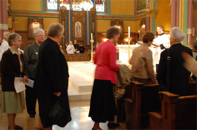 SALT LAKE CITY — Blessed Basile-Antoine Marie Moreau, the founder of the Congregations of the Holy Cross Sisters and Brothers and Priests, was born Feb. 11, 1799. On the 209th anniversary of his birth Sisters of the Holy Cross from across the United States met in Salt Lake City to celebrate his beatification, which took place in his home Diocese of Le Mans, France, Sept. 15, 2007. The sisters used the occasion to announce their congregation’s new associates program, which brings thousands of people who have had some ties to the Congregation of the Holy Cross, to pray and work for justice in accord with the order’s corporate stand on nonviolence. In all, 1,374 Sisters of the Holy Cross have served the church in Utah over the last 132 years, with sisters still serving in the Diocesan Office of Catholic Schools, with Holy Cross Ministries, in schools, and in parishes. In the Bishop Federal Library of the Diocesan Pastoral Center before Mass began, the sisters invited 46 people who had had some contact with the congregation in the past, to become Holy Cross associates. Holy Cross Sister Mary Ann Pajakowski said many of the people present had attended the Holy Cross School of Nursing and St. Mary of the Wasatch. As associates, they will join the sisters in prayer, "striving to live Jesus’ Gospel and carry on his mission by ministering in diverse ways to people around the world," the associates’ brochure said, and supporting the congregation in its work to eradicate poverty, promote just, mutual relationships among people, countries, and the entire earth community, and ending gender discrimination against women. Sister Mary Ann Johnson said the purpose of the Holy Cross Associates Program is to provide opportunities to women and men who resonate with the congregation mission, to participate in the spirit and service ministries of Sisters of the Holy Cross in a formal way. Membership in the associates’ program is open to anyone who is willing to: • share in the spirit and mission of the Sisters of the Holy Cross in today’s global reality • participate in a basic orientation, as well as in a minimum of two spiritual development opportunities annually • reach out to others through prayer and service "There are Sisters of the Holy Cross serving on four continents and in eight countries," Sister Mary Ann said. "We are at a crossroads as a world community, and we are called to address the needs of the 21st century. The Holy Cross Priests, Brothers, and Sisters constitute a family of Jesus, in which we are all equal members. We share the charisms of prayer, community, compassion, service, and actions for justice." She said with the associates, too, they will continue the mission of Jesus, one of spirituality and interconnectedness, reverence for the earth, and a commitment to work nonviolently. Sister Mary Margaret Weber of Raleigh, S. C., said the congregation continues to work for the transformation of human hearts and human relationships. "Blessed Basile-Antoine Marie Moreau worked to transform the society of his day," she said. "We are inviting you to participate in his ministry of service and prayer, to participate in the transformation, the radical change of the today’s society." Sr. Mary Margaret said the difference between hot water and boiling water with its powerful steam is just one degree. "The Holy Cross Priests, Brothers, Sisters, and Associates are all part of the Moreau vision, the mission of Jesus, and you will always be connected to Holy Cross." She said, like the Priests, Brothers, and Sisters of the Holy Cross, the associates will join in a ministry that is relationship-based and ministry-driven, one that has made a commitment to address the major issues of the day – in right relationship with one another. All of us follow the non-violent ways of Jesus. "Commit to our mission or recommit, and help us transform the world." During the Mass celebrating the beatification of Basile Moreau, Bishop John C. Wester spoke of the vital witness the Sisters of the Holy Cross have provided in the Diocese of Salt Lake City over the years. "We are all called to be witnesses," Bishop Wester said. "We are called to make the mission of Jesus known by our words and our actions." He spoke of the two disciples on the road to Emmaus, who met Jesus, but did not know who he was until they sat down to eat together. "And they knew him in the breaking of the bread. The question is out there: If you were put on trial for being a Christian, would there be enough evidence to convict you? "Moreau was a real witness," the bishop said. "And so were the Holy Cross Sisters who made that first difficult trip from Indiana to Utah. And when they arrived here, they were busy giving witness, and members of the Congregation of the Sisters of the Holy Cross continue giving witness here in Utah today. These sisters are living witnesses to Jesus’ mission here in our midst. Thank God for them. Thank God for you."