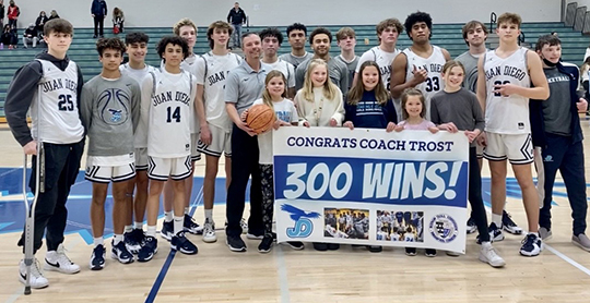 DRAPER — Juan Diego Catholic High School Boys Basketball head coach Drew Trost recently achieved a significant milestone: his 300th overall career win, which came about on Jan. 24 when the varsity basketball team claimed a 62-51 victory against Judge Memorial Catholic High School.