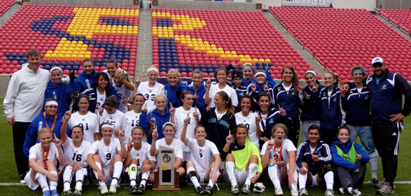 DRAPER — For the 2009 Juan Diego girls soccer team, the third time was a charm. On Oct. 24, they took home the Class 3A state championship after a tight game against Morgan at Rio Tinto Stadium. It was the first state title for the team in school history, despite the squad reaching the final game in 2006 and 2007. "It feels amazing to finally have that state championship after four years of being so close to winning," said senior Madi Harper. "Every single girl contributed to the win and that is something that you do not see on any other team. Our team is one of a kind and I am so fortunate to be surrounded by such a hard-working group of girls." Senior captain Shannon Kelliher agreed. "This season was really awesome because we united as a team to the point where we truly became a family, which made winning state that much more meaningful."" Ten of the team’s seniors reached the semifinals in the past three years and the finals two of those three years. This year, the Soaring Eagle team followed in the footsteps of its predecessors, handily taking the Region 11 championship. In state play, they defeated Grantsville 13-0 and Canyon View 4-0 to reach the semifinals, where they shut out Bear River 5-0. Against Morgan, the game was scoreless until the 33rd minute, when freshman Emily Bruder scored off an assist from Vicki Shimkus. Bruder’s goal would prove to be the only score in the game. Bruder has been the team’s leading scorer, with 25 goals in the season. The squad finished the year with only one loss, at the hands of Judge Memorial. Their two ties were against Jordan and Bingham. "We have worked really hard the last four years and it is awesome that we could finally take it all the way," said senior captain Anna Jung. We are really close as a team and every single person on the team are friends on and off the field, seniors to freshmen, and that really helped us in the long run."