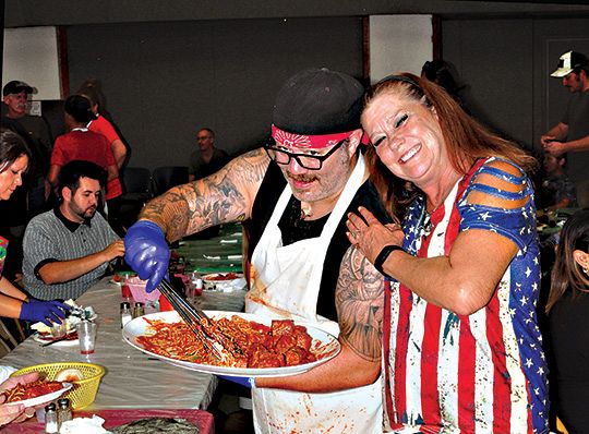 Parishioner volunteers mother and son Raylene and Anthony Moore dish up pasta at the 2024 Our Lady of Lourdes Parish Magna Spaghetti Dinner. Preparations for the dinner, a longstanding tradition, begin a week in advance to welcome hundreds of people from across the Salt Lake Valley. Funds raised at the annual event go to the parish.