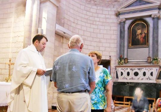 James and Tara Evans had just returned June 14 from a pilgrimage to the Holy Land led by Fr. Richtsteig, who said that their guide, a Palestinian Christian, learned of the shooting and arranged for a June 17 Mass for James Evans at the Basilica of the Annunciation in Nazareth.