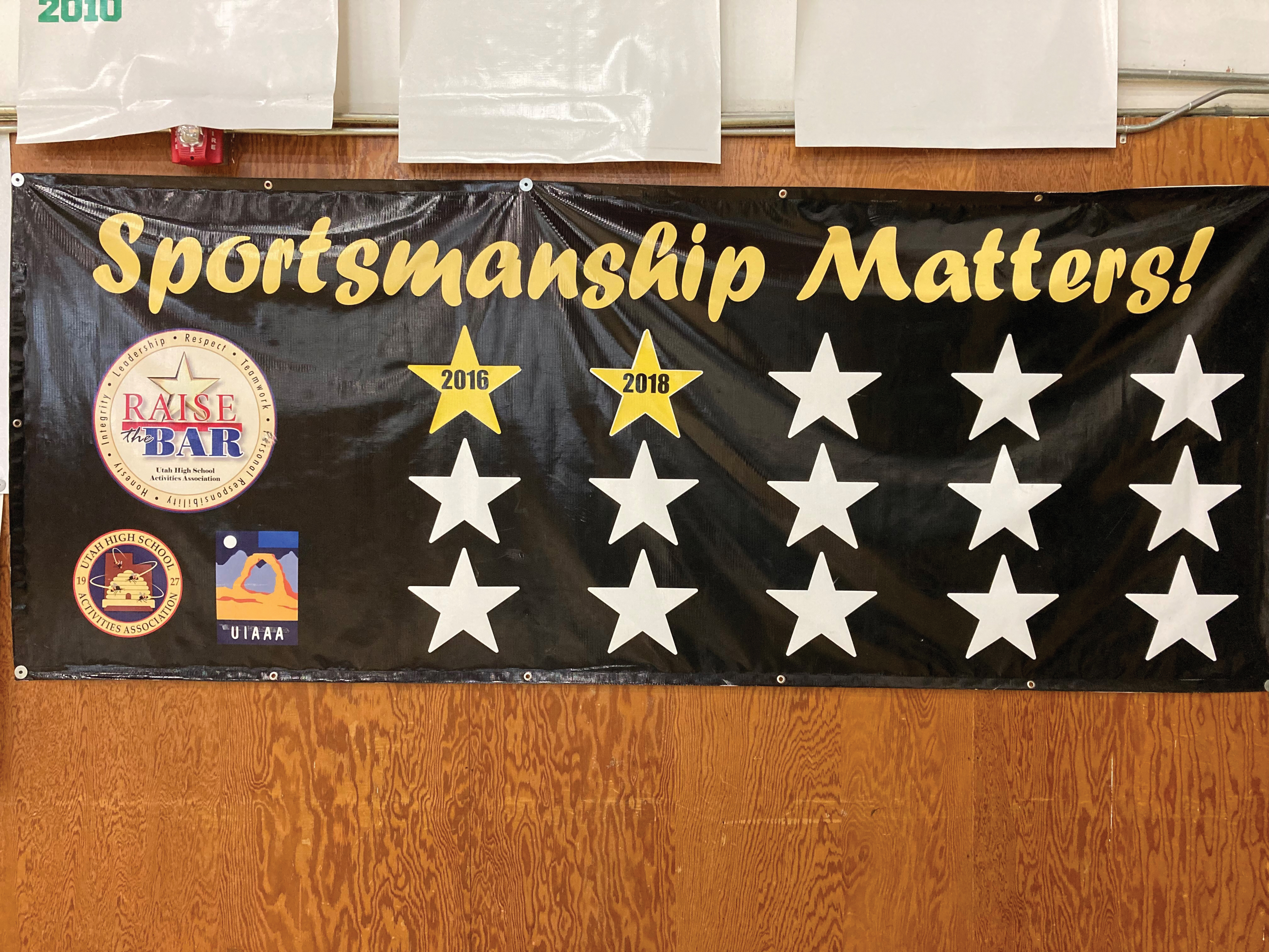 Draping the walls of the Fr. Neale Herrlich Gymnasium at St. Joseph CHS are many state and regional championship banners. Perhaps the “All Around Sports” and “Sportsmanship” banners typify St. Joe’s athletic success most.