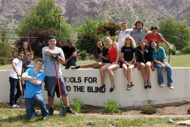 By Rachael Sutherland Special to the Intermountain Catholic OGDEN — Sometimes giving begins by taking something away. Weeds that is…. On May 10, sophomores from Saint Joseph Catholic High School lent a hand and a spade to beautify the Utah School for the Deaf and Blind. Organized by student Elizabeth Toman and theology teacher Corbin Johnson, the 48 high school students spent the day gardening, pulling weeds, cleaning and planting. The project began when Toman was talking with her basketball coach about why he encourages young people to get involved in sports; he told her that someone encouraged him, so he encourages others. "The conversation got me thinking about what our school could do to help others. My coach has a connection to the [Utah School for the Deaf and Blind] and that got me going," Toman explained. It was a great way for the high school students to give something to someone else. The students got a chance to work together in their community and the fact it was another school was a bonus. A student commented, "My favorite part was spending time with friends outside of school in a beneficial way." The students worked for hours on the front of the school, bringing the planters, borders and places where there used to be plants and flowers back to life. "It was a lot of hard work at first, hot and just hard work, pulling weeds from the dry dirt, but it was great seeing the final results," said Will Carrington. The sophomore curriculum focuses on the Paschal Mystery and how Jesus Christ’s mission continues in the Church today. Jesus’ mission is one of unconditional love for one’s neighbor. "We can sit in the classroom and discuss the parables and actions of Jesus until our faces turn blue, but actually getting out and serving our neighbors gave us an actual experience of living the Gospel," said Johnson, project advisor and sophomore theology teacher. "It is fortunate we have resources for the hearing and vision impaired in Ogden but we have very little exposure to the world of the deaf and blind. I know many students were moved by playing with the second graders. More than anything, I think we were able to connect with a seldom-encountered segment of the population and share in profoundly humanizing interactions." "We even got a chance to play with the kids from the school," commented SJCHS sophomore Kelsie Gould. "That was the best part of the day!" Sutherland is an incoming junior at St. Joseph Catholic High School.