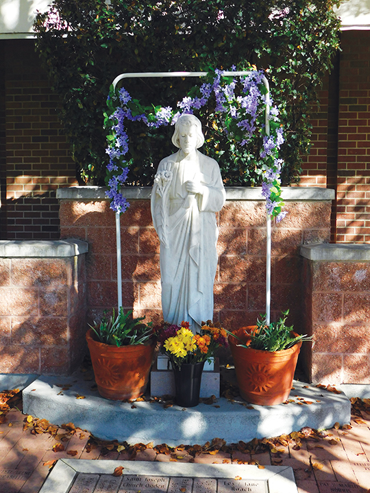 This statue of Saint Joseph located on a small garden outside Saint Ann Parish in Salt Lake City was cleaned up and decorated by a parishioner. When the statue was cleaned it became evident that it had been spray-painted and the nose had been broken. In the upcoming months the statue will be repaired by a donor. IC photo/Laura Vallejo