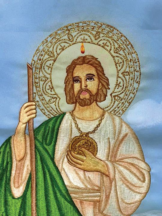 The banner, which was sewn by hand in Mexico and brought to Utah by faithful St. Jude devotees, depicts the image of the saint and the words in Spanish “Devotion to St. Jude, Salt Lake City.”