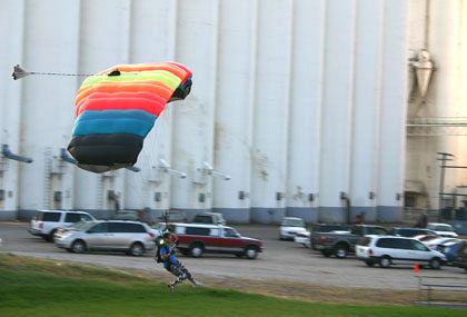 OGDEN — Parishioners came dressed in 1950s style poodle skirts, ponytails, white T-shirts, and Levi denim jackets for the 50th anniversary of St. Mary Parish in Ogden May 8. The 1950s theme was to honor the dedication of St. Mary Parish in 1957. More than 500 parishioners lined the parking lot for the special surprise of three skydivers floating to the ground from 7,500 feet. They landed right on target across the street from the church to kick off the celebration. Jesuit Father Martin Rock, pastor of St. Mary Parish, said he was grateful for 50 years of parishioners, the organizations of the parish, and the volunteers who made this celebration possible. "I love this church," said LaDean Barela. "Building our new church in West Haven is bitter sweet. I was a member when we used to meet at Santa Maria Mission in Ogden and Jesuit Father Louis E. Kern was our pastor. We only had one Mass once a month." Bishop Duane G. Hunt of the Diocese of Salt Lake City dedicated Santa Maria Mission Oct. 21, 1945, when there were 147 families, according to "The Salt of the Earth," by Bernice Mooney. "In 1947, the mission was organized for the Hispanic community. "I remember when they were building St. Mary Church in the 1950s," said Barela. "We would walk around the foundation singing. My husband and I were one of the first couples to get married in the new church in 1958. "It will be sad not to come here any more. But I am watching the new church being built just like I watched this one. I have a lot of memories here. It is heart breaking to see it go." Barela said members have always come from Roy, Layton, West Haven, Clinton, and Eden to St. Mary Parish. "You must be very good to your pastors to keep them, you have only had three since this parish began in 1957," said Bishop John C. Wester of the Diocese of Salt Lake City in his homily. Fr. Kern was pastor from 1957 to 1974, Jesuit Father Neale W. Herrlich from 1974 to 1992, and Fr. Rock from 1992 until the present. Bishop Wester noted how interesting he has found it going from one parish to another and seeing how each parish has its own charism; its own personality. Bishop Wester said the key to getting a sense of the parish is getting to know the parish members. "The body of Christ knows no boundaries and is not neatly packaged," said Bishop Wester. "Jesus taught us as parishioners to love one another. This is the way to show our love for God and one another, and that is not easy, that is part of the cross and what it means to be church. That is what you have been doing for 50 years here at St. Mary. You have been placing God in the center and have allowed the love of God to spill over into your love for each other. "On behalf of the Diocese of Salt Lake City, we congratulate you and offer you our prayers as you continue on your journey into the exciting time of building your new church," said Bishop Wester.
