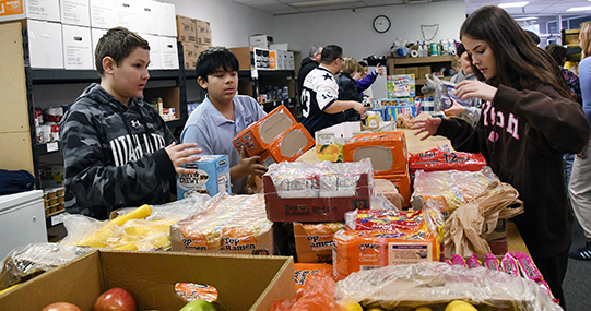 NORTH SALT LAKE — The eighth-grade class from Saint Olaf Catholic School in Bountiful took a break from their normal P.E. class on Feb. 16 to fill the shelves at the Ladies of Charity Center of Hope Food Pantry in North Salt Lake.