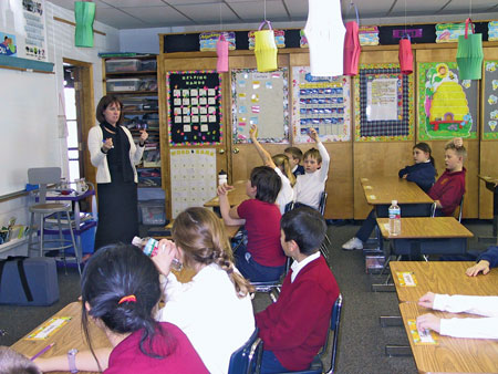 BOUNTIFUL — The St. Olaf fourth grade students in JaNeal Rodriguez’s class raised $1,119 for the Make-A-Wish Foundation of Utah. The money they raised helped John’s wish come true. John is 9 years old and he has a liver disease. He and his eight brothers and sisters went to Disney World in Florida. "The Make-A-Wish Foundation grants wishes for children with life-threatening illnesses, or medical conditions. This does not mean these children are going to die because some of the children whose wishes are granted do survive their illnesses," said Debbie Mintowt, director of Marketing and Development for the Make-A-Wish Foundation. "If the children qualify to have their wishes granted, it means they have something serious like cancer, cystic fibrosis, or they might need a heart or liver transplant. Some of the children have a really good chance of surviving." Mintowt said if getting a wish granted meant for sure these children were going to die, many parents would not want their children’s wish granted. They would not want to think their child was going to die. It would also make her job really hard and unbelievably sad. Make-A-Wish grants wishes to send a message to children, not to give them something material. The message is that the Make-a-Wish Foundation, together with the children’s family members and community, love and care about these children. Having wishes granted gives children hope, joy, and the strength to survive. There are four kinds of wishes Make-A-Wish grants: I wish to travel to…, I wish to meet…, I wish to have something, and I wish to be a…, which is a fantasy wish. Children are asked to declare three wishes in case the first wish cannot be granted, either because of the child’s health and the doctor will not authorize it, or it might be a wish they would not want to grant. For example, one child wished to hunt jungle animals. The foundation decided it would not be smart to give a child with a life-threatening illness a gun. So they did not grant that wish, but granted another wish he had requested. "Make-A-Wish is special for children who live in Utah or California because there is a foundation in these two states," said Mintowt. "The foundation in Utah only grants wishes for children living in Utah. Children who are eligible to make a wish are those with a life-threatening disease between the ages of 2 and one-half and 17 years." Mintowt read the students a story written and illustrated by Daxton, a 4-year-old boy who had a brain tumor and died four years ago. His wish was to go to Disneyland. His story is about himself as the superhero, cancer as the bad guy, and Capt. Chemo and Capt. Radiation as the good guys. Mintowt said all of the children for whom they grant wishes are superheroes because they all have to overcome going to the hospital when they are very sick and possibly have to stay for a long time. They have to undergo painful surgeries or treatments, and they must deal with knowing they might soon die. Daxton’s story shares the reality of what it is like to be really sick. Mintowt said even though Make-A-Wish grants wonderful wishes for children, being sick is not something you would want so you could have your wish granted. Most of us would prefer to be healthy. Rodriguez said the 21 students in her class raised the money by making crafts at home and in class. They sold the crafts to the other students in the school. The students planned on having a two-day sale, but sold out of items the first day. So that night Rodriguez and others had to make more items or get items donated. The sale was Dec. 15-16, and timely for Christmas gifts, stocking stuffers, and Christmas decorations. This started as a junior achievement service project in which the students were learning about businesses and companies. Once they chose where the money they raised would go, they named their business Merry Christmas to Make-A-Wish. Each student had his or her own company, which fed into the larger class company. The first day the students raised $600, and they only expected to raise a total of $300 for both days. Some of the items they made were snowman bookmarks, scarves, personalized ornaments, neck-roll pillow sets, and door hangers. The students thought of a project for themselves, and then the class compiled a list of what they needed, and the parents donated the supplies. The students learned from this project what it is to have a business, to advertise, and to make a product. They also learned about giving and why giving is so important.