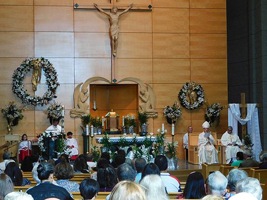 The anniversary event began with a Mass on April 29. Bishop Oscar A. Solis presided; the concelebrant was Father Gustavo Vidal, pastor. Deacon Lynn Johnson and Deacon Bernardo Villar assisted.
