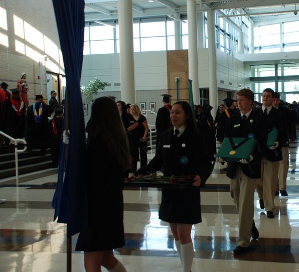 DRAPER – During the celebration of the graduation of 2011, 18 Juan Diego Catholic High School students were awarded high honors. Monsignor J. Terrence Fitzgerald, vicar general of the Diocese of Salt Lake City and Dr. Galey Colosimo, principal of Juan Diego Catholic High School, presented each honoree with their award and medallion. The first set of awards honored the light of the school. The second set of awards honored the light of the family and the last set of awards honored the light of the community. As part of the first set, the Saint Katherine Drexel Award went to Samantha Schumm. Kelsey McGary was presented with the St. Joseph Award. The St. Francis of Assisi Award was for Evan Makin. Natsumi Alvarez and Guy Todaro received the Juan Diego Awards. The Our Lady of Guadalupe Award was presented to Carmen Voegeli and Marilyn Voravong. Dr. Christine Celestino received the Christ the Teacher Award. Each of the eight nominees for the St. Thomas de Aquinas Award stood up as his name was called. St. Thomas de Aquinas Award recognizes the senior young man whose love of learning, excellent academic record, classroom participation and religious self-discipline have gained him the respect of the faculty and the admiration of his peers Of the eight nominees, Scott Williams was called forward to receive the award. The Saint Teresa of Avila Award, which recognizes the senior young woman whose love of learning, excellent academic record, classroom participation and religious self-discipline have gained her the respect of the faculty and the admiration of her peers, was presented to Katie Mullin. The Saint Sebastian Award, which recognizes the senior who has demonstrated a Christian spirit in conduct on and off the playing fields and courts, and who has inspired others to a deeper faith and greater love of sports, went to Victoria Shimkus. The Saint Cecilia Award, which recognizes the senior who has demonstrated excellence as a Christian role model, a student, a person of faith, and most especially who has inspired others by the love of the performing visual arts, was presented to Lauren Rathbun. The Saint Michael the Archangel Award, which recognizes the faculty or staff member in the school who, through a life of service, a generous heart, a creative spirit, good will, exceptional fidelity, and lasting commitment, has contributed significantly to the mission of the school, was received by Robert Jackson. The Spiritus Donorum Honor, which recognizes community supporters who have followed their example of the ‘Spirit of giving’ by offering time, talent and resources on behalf of Catholic education, was given to Tricia Heinz, Ron Heinz, Edmond Malouf, Robert Sullivan and Lindsay Atwood. The Soaring Eagle Class of 2011 had numerous academic achievements. Ninety-nine percent of the 190 graduates are bound for higher educational institutions; 42 percent earned concurrent enrollment college credits. The class boasts two National Merit Finalists. Among other achievements, the school produced the 3A State Champion Debate team with two debaters who are ranked 18th in the nation, 14 students ranked Superior at the State Drama Festival, five instrumentalists and four vocalists who qualified for the State Solo & Ensemble Festival and 11 musicians who qualified for the State Percussion Festival. Perhaps most tellingly, the Class of 2011 gave $8,800 and pledged $2,660 to provide tuition aid to future students and raised $3,107 for disaster relief to Japan.