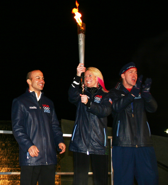 SALT LAKE CITY — Hundreds of people gathered Feb. 8 at Rice-Eccles Stadium to celebrate the 10th anniversary of the 2002 Olympic Winter Games with a ceremony that relit the Olympic caldron. Among them were many Catholics who participated as athletes, torch bearers and volunteers at the Salt Lake City games. "The re-lighting of the caldron is great because it ignites the spirit of the 2002 Games," said Derek Parra, 2002 speed skating gold medalist and world record holder. "2002 was such a great time for this city and our country just after Sept. 11, (2001). The way our teams performed gave Americans the momentum to get back on our feet after that tragedy. The re-lighting of the flame for me is very significant of that time in our country and the spirit we had at the Games with the world coming together, because everybody was feeling the impact of Sept. 11. "I hope the youth in this state will re-light that fire within and want to learn more about the Olympics and set goals academically, through sports or careers to once again bring the Games to Utah," said Parra. Volunteers and torchbearers recalled how the flame lit up Utah as it traveled across the state in the torch relay to begin the winter games. The torchbearers were chosen because they had overcome severe illness or great obstacles. Cancer survivor and Olympic volunteer Connie Wimer, a Holy Family parishioner, helped bring coverage of the 2002 Olympic Games to her home country of Germany. "Television stations from Germany were with the whole day of my run," she said. "They picked me up early that morning and took me to Antelope Island to make a video and ran it in Germany when the games began. "The torch was heavy, so I practiced how I would hold it in my left hand because I had breast cancer on my right side, but the minute the torch was passed off to me I carried it in my right hand and just started going. It was so exciting. It brings back so many emotions as I remember seeing my friends and groups I belong to lined up along the road cheering. The Olympics were so good for us because they brought a lot of business and tourism to Utah." Wimer and her husband, Ken, volunteered as translators during the Olympics because they speak French, German, Spanish and English. "I met so many people, I could tell you stories forever," she said. "The Olympics were magical." Karen Fisher, of Saint Olaf Parish, remembers the thrill she had carrying the torch especially riding the bus to the drop-off point. "They said we would be instant rock stars and it was like that, with people banging on the bus windows and cheering," she said. "On my torch run, I ran under the flag being held up by the fire department and that meant the world to me since I collect anything that has to do with the flag. It was one of the best feelings I’ve had in my life." Ida Brunatti and her son Dennis, from Saint Ann Parish, were volunteers during the 2002 Olympic Games. At 91, Ida was the oldest volunteer and served as an Italian translator in the media center. "I also worked security," she said. "The Olympics were fun." Dennis Brunatti worked in the international center, solving issues such as the Russian news media wanting to take a tour of Hill Air Force Base. "That was possibly a high security risk that had to be cleared," he said. "The Olympics brought national and world recognition to Utah. People went away remembering how nice they were treated and how nice the accommodations were here."