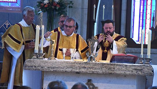 PARK CITY — Father Anthony Shumway, who was ordained a priest on June 28 at the Cathedral of the Madeleine, presided at a Mass of Thanksgiving the next morning at Saint Mary of the Assumption Catholic Church in Park City. Concelebrating were the pastor, Father Christopher Gray, and several other priests of the diocese. Deacon Tom Tosti proclaimed the Gospel; also assisting was Deacon Juan Biaggini Galarraga, who was ordained at the same time as Fr. Shumway.