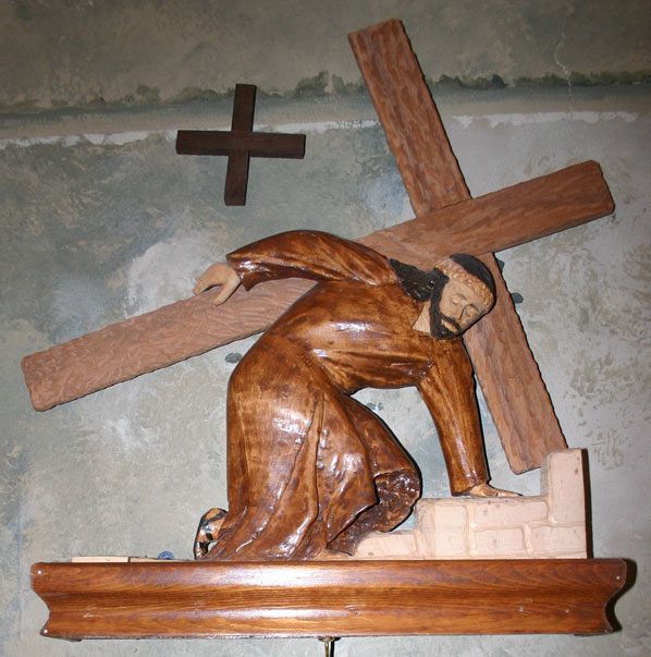 Jesus Falls the First Time, the third Station of the Cross, is found in Our Lady of Lourdes Church, Magna. Bernard "Paul" Chavez of Our Lady of Lourdes Parish, created these stations, carving them out of bass wood. "First I had to lay them out in my mind, then begin carving," Chavez told the Intermountain Catholic. Some stations consist of four to five pieces of wood, intricately carved, then fit together. The Stations project took Chavez 14 years to complete, with each station taking between 300 and 400 hours from start to finish. The retired manager of the Federal Courthouse in Salt Lake City began the project in 1986 and finished it in 2004. A second generation Mexican-American originally from New Mexico, Chavez and his wife were married in Our Lady of Lourdes Church, Magna, in 1966. Creating hand-crafted stations for the church, was "a promise I’d made to myself," he said. IC photo by Barbara S. Lee