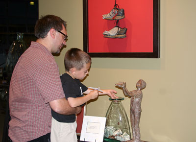 SALT LAKE CITY — Majid Omana, owner of Evergreen Framing Company & Gallery, Inc., hosted his first shoe show, "If the Shoe Fits," to raise funds for the Shoe Fairy Sept. 21. Guests strolled the gallery through art with sole including painted shoes and boots of all kinds, chocolate shoes, shoe cookies, and cards of shoes. Twenty percent of the proceeds from the evening’s sales were given to the Shoe Fairy. Wendy Olsen became the Shoe Fairy in 2002 when a little boy in her daughter’s first grade class at Orem Elementary School wore a pair of worn out, torn, and duct-taped shoes to school on a cold and snowy February morning. The boy stayed in the classroom during recess because he did not want to go outside. After learning the boy’s family could not afford to buy shoes, Olsen and her daughter decided to buy him some new shoes. "We took the new shoes to school and told him they were from the Shoe Fairy, and if they fit him, he could have them," said Olsen. "He tried them on and they fit. He was so happy he asked, ‘Can I really have them?’" Olsen’s goal is to make sure no matter the circumstances, children in elementary schools throughout Utah have a good pair of shoes. Olsen takes 100 percent of the donations she receives to buy $15 gift cards from Payless Shoe Source. This way the students and their parents can pick out the shoes they want. Olsen works with teachers to have them notify her when it looks as if a child is in need. Linda Burnside of the Jordan School District JSIT (Jordan Student Intervention Team) an outreach program, said when they see a student in need, they notify Olsen and she will give them shoe vouchers without question. If the shoes only cost $10 they are able to buy $5 worth of socks. Between Aug. 27, when school started and Sept. 20, Burnside has requested 50 shoe vouchers. The vouchers go fast because they are so needed, and shoes are so expensive. "It is embarrassing for children to have to wear shoes that are worn out and taped together," said Burnside. Omana heard Olsen speak on public radio and after listening to her talk about the Shoe Fairy program and thinking about how important shoes are to children, he knew he wanted to help. It is nice that parents and children are able to pick out the shoes themselves and so they can choose something that reflects them and their own individuality. It gives them ownership to be able to go to the store and buy the shoes themselves. Omana thought art with sole would be a great theme for a show, and a way to help a good cause. He said all of the artists were completely enthusiastic about participating. After word spread about the shoe show, Omana had to turn artists away who wanted to help. Omana said the shoe show for donations to the Shoe Fairy will become an annual event. For more information, visit The Shoe Fairy.org.