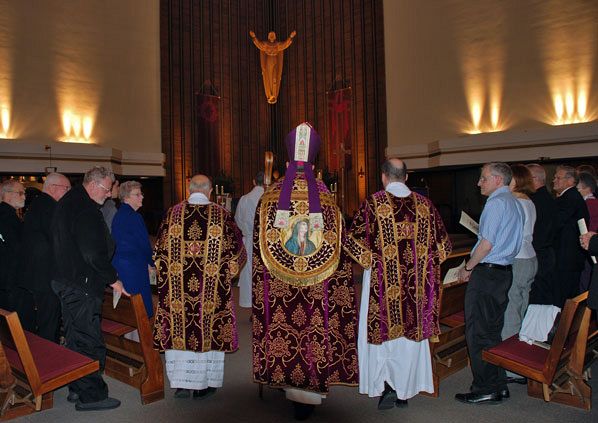 SALT LAKE CITY — "O God, come to my assistance. O Lord, make haste to help me," sang the choristers of the Madeleine Choir School and members of the Cathedral of the Madeleine Choir at the evening prayer service for the installation of Bishop-designate John C. Wester at St. Ann Church March 13. "The choir put the congregation into a prayerful frame of mind with their beautiful music," Bishop Wester later said of the vesper service. Bishop Wester welcomed the congregation, especially those who came from so far away. He said, "this is a time for me to allow all of you in the Diocese of Salt Lake City to offer your welcome to me. "I thank your past bishop, Archbishop George Niederauer of San Francisco, for the blow by blow description he gave me of the cold winters here," said Bishop Wester. "I brought my gloves and hat and now it’s not cold at all. However, two weeks ago the movers stopped about a half a mile short of the residence because they could not get up the hill because of the snow... "In the first reading, James is looking at different types of faith," said Bishop Wester. "There was a study performed in a school where teachers divided into three groups. The teachers told the first group that not much was expected of them. The second group was told they would do fine. The third group was told they were geniuses. "The teachers gave all the students the same test. The first group did poorly. The second group did average, and the third group did very well. "It is interesting because it seems our actions are centered around what we do instead of who we are. In the first reading, James contrasts one type of faith, a merely verbal faith, with another type of faith that is displayed in actions – a faith that is active, persevering, faithful, obedient, and loving. This kind of faith, James tells us, fully innovates our lives in all we do so our actions flow from who we are. Our actions flow from our faith." Bishop Wester said this same story from James also occurs on the seventh Sunday in the B cycle and the 24th Sunday in the Gospel, where Jesus asks, "Do you know who I am?" The first part of the Gospel reflects on who Jesus is – a person who is deep in faith and love. In the second part of the Gospel Jesus tells us in order to follow him we must lay down our lives and take up our crosses. "Clearly Jesus is an example for us whose actions spring forth from faith." Prior to his installation, Bishop Wester said he was thinking about all he had been doing and all he will be doing. He said it seems our first calling in this celebration and installation, is to concentrate not so much on what we do, but who we are. Who we are as leaders of the faith, as bishops, priests, deacons, religious, and all the wonderful people who make up this Diocese of Salt Lake City. "I think it is wonderful that our first moments together are moments of prayer," said Bishop Wester. "They are moments of coming together in social interactions, forging those bonds that will see us through in the future. We place our trust in God. As you and I start on this threshold of a faith journey, I know that our actions will speak louder than words because our action are rooted in faith."