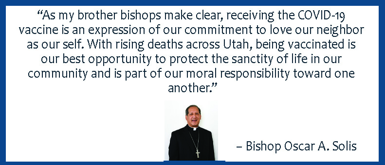 Bishop Oscar Solis welcomed the review by the USCCB and said, “As my brother bishops make clear, receiving the COVID-19 vaccine is an expression of our commitment to love our neighbor as our self. With rising deaths across Utah, being vaccinated is our best opportunity to protect the sanctity of life in our community and is part of our moral responsibility toward one another.”