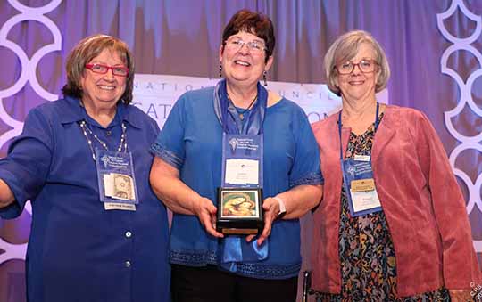 She was presented with the award by her friend Pat Voorhes, a St. Vincent de Paul parishioner who is the current NCCW president, at the organization’s annual conference on Nov. 2 in Minneapolis, Minn.