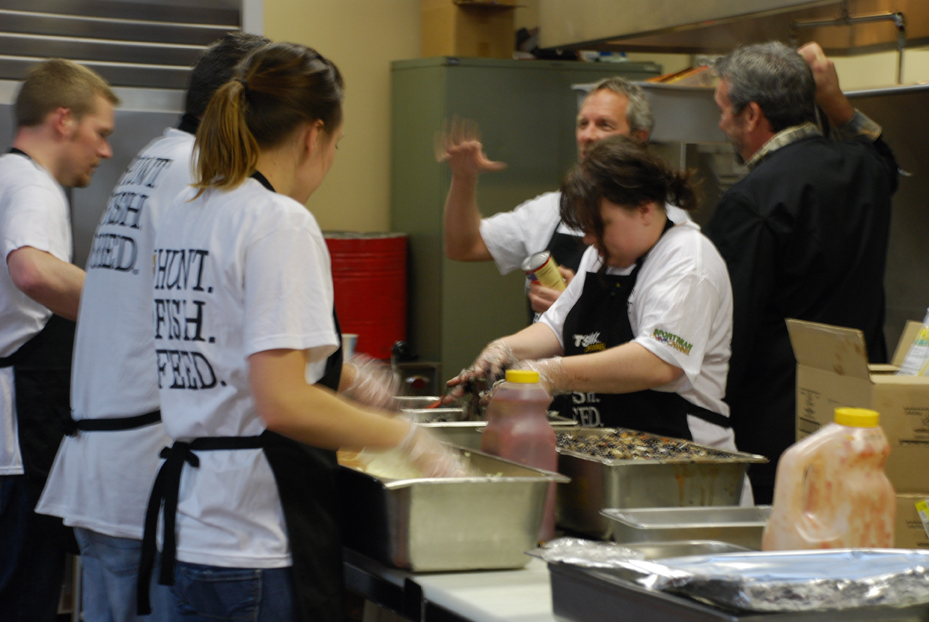 SALT LAKE CITY — The Sportsman Channel and Mule Deer Foundation teamed up for the Hunt Fish Feed event, which served a special venison dinner to 2,000 of those in need at Catholic Community Services on Feb. 8. Because the Western Hunting & Conservation Expo was going to be in Salt Lake City and they received an invitation from CCS to help, they decided that the Hunt Fish Feed program should help those in need in the city, said Michelle Scheuermann from the Sportsman Channel. Hunt Fish Feed was created by the Sportsman Channel. It is a unique outreach program that collects game meat and fish donated by sportsmen to feed those struggling with hunger across America. At the Salt Lake City event, 600 pounds of venison was donated by local sportsmen through the Mule Deer Foundation. "We first decide to go where the needs were, so we hit L.A., Detroit and Washington D.C., feeding thousands of people, and then people started coming to us, and groups starting coming to us and they said, ‘Would you come here? Would you do this for me?’" said Scheuermann. "For example, here we are partnering with CCS because the convention is in town, so it’s a joint venture. We have a lot of volunteers here because of the Mule Deer Foundation." The invitation from CCS was a perfect fit for the program, said Scheuermann, who likes helping people. "I am a Catholic and it’s just really interesting and unique how I can tie my life with my work because I am working right now, but you know I am helping. Whenever I get to go to Catholic shelters that’s like double dipping." "We are grateful to Sportsman Channel and the Mule Deer Foundation for bringing their fine cuisine to the hungry patrons at Catholic Community Services," said Dennis Kelsch, CCS Basic Needs Services Director in a press statement. "This is a rare treat for many of our clients, and we are excited they got this opportunity to have a dinner cooked by renowned chefs." The Hunt Fish Feed menu on Feb. 8 at CCS was venison tacos, salad and brownies. "It’s so great for persons like this to be able to come and help cook and serve dinner," said Lauren McCarty, CCS public relations coordinator. "The food is coming from local hunters, local fishermen. It’s local food, and especially so different from what we usually are able to get people, so it’s a treat." Volunteers from all over the United States gathered in the kitchen at CCS’ St. Vincent de Paul dining hall in Salt Lake City, cutting tomatoes and lettuce, or helping season the meat. "On the eve of our annual meetings and Western Hunting & Conservation Expo this week at the Salt Palace, as members and other hunters join us from across North America, we are proud to share the bounty of the hunt," said Miles Moretti, CEO of the Mule Deer Foundation, in a press statement. Over 13,000 meals in 13 different cities have been served by Hunt Fish Feed. "They have always said when you give, you get back hands full. I don’t think people really understand that, so they don’t do it," said Scheuermann. "Especially those who … don’t practice any religion, they do not understand the whole circle of life and how things work, so for me the hard-working group of volunteers in here – they are just gems." "It’s great. It’s amazing," said Maritina, a woman who had the venison taco dinner. "We just really appreciate what they are doing; helping our clients, making sure that they have a treat," said McCarty.