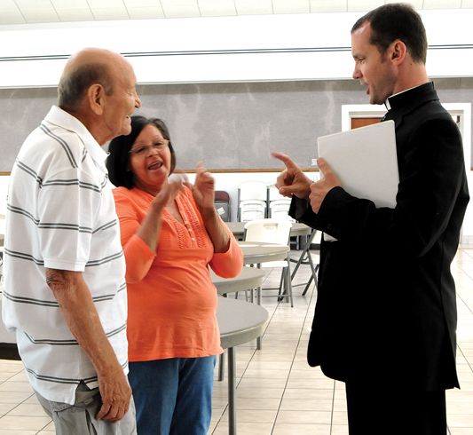 SALT LAKE CITY — The Diocese of Salt Lake City’s Deaf community enjoyed a special visitor the weekend of June 30 when Father Shawn Carey, director of the Deaf Apostolate for the Archdiocese of Boston, celebrated two Masses and gave instruction to adults and children. Fr. Carey, who was ordained a priest three years ago and is deaf, said many Deaf Catholics don’t feel as though they have access to the church. "They feel isolated within a whole church of all these hearing people," he said through interpreter Carol Ruddell, who is secretary for the Diocese of Salt Lake City’s Commission for People with Disabilities. Ruddell was the interpreter for all the people interviewed for this article. At his home parish of Sacred Heart in Newton, Mass., Fr. Carey celebrates a weekly Sunday Mass in American Sign Language. "Many Deaf people will come to that Mass, and then after Mass we have a social time, so many drive an hour or even 90 minutes to come to Mass," he said. By contrast, Utah’s Deaf Catholics are visited about once a year by a priest who knows sign language, Ruddell said, although American Sign Language interpreters are available in the diocese. "Wow!" was the reaction of members of the local Deaf community to Fr. Carey’s visit. "When I have an interpreter, that’s OK, but when it’s a Deaf priest, he explains everything so clearly," said Arthur Valdez, a Saint Catherine Siena/Newman Center parishioner. "You learn a lot. I’m just in awe, understanding everything. It’s just a wonderful Mass. When I have an interpreter, that’s fine, that’s OK, but this way we can watch the face of the priest who is celebrating Mass." Ruddell also arranged for Fr. Carey to celebrate the first penance for deaf children in the diocese. She expected several children, but only one came. Nadia Suarez, a parishioner of Saint Mary of the Assumption in Park City, said she was excited to celebrate her first penance, although she doesn’t know how she will celebrate the Sacrament of Reconciliation in the future, because no priest in the Diocese of Salt Lake City is adept at sign language. "Oftentimes the Deaf are forced to use pencil and paper" when they go to confession, Ruddell said. However, the U.S. Conference of Catholic Bishops is revising its directives regarding the use of technology, and she anticipates that with the revision the Deaf community will be able to use technology such as iPads for the Sacrament of Penance, she said. About a dozen adult members of the Deaf community attended Fr. Carey’s class on June 30. Among them was Anita Archuleta, a Saint Vincent de Paul parishioner, who said she was looking forward to having Fr. Carey discuss the revised language of the Nicene Creed and other changes that came about last year with the implementation of Third Edition of the Roman Missal. "I think it’s better if I learn it together with Father," Archuleta said, adding that it was wonderful to have a Deaf priest celebrate Mass even though his signing was a little different than she is used to here in Utah. Nevertheless, she said it was easier for her to get into the spirit of the Mass with a Deaf celebrant because the communication was directly with him rather than an interpreter. Wally Sibson, another Saint Vincent de Paul parishioner, agreed. "Hearing priests are fine, but a Deaf priest is just like me. He understands us," Sibson said. "We have the same experience. It feels much more comfortable and I understand better."