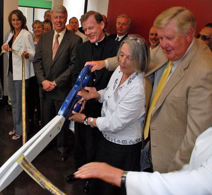 SALT LAKE CITY — El nuevo complejo de Catholic Community Services, (CCS, Servicios a la Comunidad Católicos) con un área de 22.000 pies cuadrados, se localiza en el lado norte de la 300 Sur entre 700 y 800 Este en Salt Lake City en un entorno de árboles. Con edificios donados por Intermountain Health Care (IHC) y renovados con generosos donativos de individuos, corporaciones, e iglesias, el complejo ha reunido, por primera vez en varias décadas, a todos los ministerios de CCS en Salt Lake City en un solo lugar. Dedicado y bendecido el 11 de julio por el Obispo John C. Wester de Salt Lake City, el complejo alberga los servicios de tratamiento de abuso de alcohol y drogas tanto para hombres como para mujeres, el lugar de residencia para familias que han sido víctimas de violencia doméstica, oficinas administrativas, un programa de asentamiento de refugiados, servicios de inmigración, oficinas para ayuda psicológica, servicios para el pobre, y alcance para los ancianos. La ceremonia de dedicación reunió a líderes civiles y religiosos de toda la comunidad y también al Padre Larry Snyder, director ejecutivo de Catholic Charities U.S.A. «Éste es un hermoso complejo que servirá a las poblaciones vulnerables de Salt Lake City por muchos años», dijo Larry Page, presidente del consejo administrativo de CCS, durante sus palabras de bienvenida. «Mucha gente colaboró para que esto se hiciera posible; se requiere de donadores generosos para hacer un sueño como éste una realidad.» Page dijo que el personal de CCS está encantado de estar en su nuevo hogar, «con todo bajo un mismo techo». El edificio, el cual en un tiempo albergó la Clínica Médica Bryner y después una clínica de IHC, tiene 50 años de una historia muy interesante y dinámica, dijo Page. «Esperamos ver 50 años más de este complejo, y algún día nos gustaría no tener que contar con él.» Page elogió a la Directora Ejecutiva de CCS Maggie St. Claire y a su personal por la labor de supervisar y llevar a cabo la misión de CCS, la cual sirve a todos los necesitados sin importar raza, religión, clase o estatus. «Todos somos amados igualmente por Dios.» St. Claire, cuya felicidad, por la terminación de más de un año de planeación, la renovación del edificio con un costo de $3,3 millones, y la mudanza, era evidente en su sonrisa, dijo que el complejo fue diseñado con un enfoque en las necesidades residenciales de la gente. «Tenemos residentes en el piso de abajo; ese es el lugar donde viven.» El piso de arriba del edificio de residencias, donde las festividades de dedicación se llevaron a cabo, es donde las mujeres residen. «Cada ladrillo de este edificio tiene una historia», dijo St. Claire, «desde los años que el edificio albergaba la clínica médica hasta ahora que se ha renovado. Estamos agradecidos por todas las historias, y seguiremos adelante ayudando a la gente que lo necesite y añadiendo más historias.» St. Claire agradeció al consejo administrativo de CCS, cuya labor y planificación hicieron posible este nuevo complejo, a todos los donadores por sus donativos individuales, y al arquitecto, David Richardson, y a los contratistas de Culp Construction quienes modernizaron el edificio. «Cada persona que tuvo algo que ver con este proyecto es un ladrillo, una historia.» Reconociendo que la función no excluye la forma, St. Claire dijo que los empleados de CCS están siendo alentados para que individualicen sus oficinas. «Tenemos algunos clientes que estaban renuentes a cambiarse de la antigua St. Mary’s Home al nuevo edificio», ella dijo. «Fue grato saber que otros residentes que sabían a donde se habían ido nuestros clientes renuentes los buscaron y les dejaron recados diciéndoles que el nuevo complejo estaba bien y los invitaron a regresar a casa.» Kem Gardner de Intermountain Health Care dijo que CCS ha logrado una transformación maravillosa del antiguo edificio. «Juntos, nuestra asociación ha creado un lugar sagrado donde gente necesitada puede venir a buscar alivio. Los constructores originales estarían felices con lo que hemos hecho aquí.» Asociado por mucho tiempo con St. Claire en United Way, Gardner dijo que cuando IHC estaba pensando que hacer con el edificio de la clínica, «los miembros del consejo dijeron "compartámoslo con la comunidad," y estamos contentos de haberlo hecho así.» Gardner reconoció a St. Claire por su compasión y su buena voluntad de servir junto a gentes del Centro para Niños de Salt Lake, la YWCA, y otras «gentes tan buenas que quieren ayudar en la noble misión de cuidados de la salud y el milagro de la cura.» St. Claire agradeció a IHC por su generoso donativo del edificio, y por reconocer la misión de CCS en la comunidad. Ella también agradeció al Vicario General Diocesano Monseñor J. Terrence Fitzgerald por su acertado liderazgo y por animarnos durante todo el proyecto. «La gente ha dado muchísimo», ella dijo, «y en la mayoría de los casos hemos recibido. Les aseguro que cada dolar donado ha ayudado.» Pamela Atkinson y el Dr. Dominic Albo, quienes dirigieron el Comité de la Campaña Capital del proyecto hablaron de como fueron a la comunidad solicitando fondos y de todas las llamadas telefónicas que hicieron a posibles donadores. Reconocieron la generosidad de la Fundación Eccles, Bob Steiner, Fidelity Medical Inc., Ivory Homes, La Iglesia de Jesucristo de los Santos de los Últimos Días, y del Banco Zion por su donativos en especie, la familia McCarthey, y «muchos otros que no buscan reconocimiento pero que aprovecharon esta oportunidad magnífica para hacer sus donativos, y así, cuando otras agencias estaban enfrentándose a la necesidad de cortar programas, nosotros estábamos agrandando un nuevo y hermoso complejo.» Monseñor Fitzgerald les recordó a los ahí presentes que CCS fue fundada en la Diócesis en 1910 bajo el nombre de Catholic Charities. En 1945, bajo el entonces Obispo Duane G. Hunt c