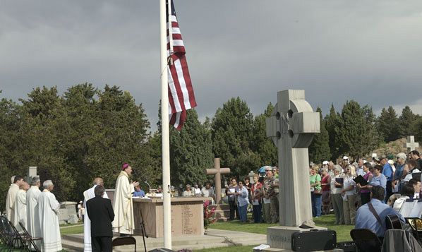 Nationwide, cemeteries were filled Monday, May 28 with visitors observing the Memorial Day holiday by visiting the graves of veterans and those who died in battle. In Salt Lake City, several hundred people joined Bishop John Wester of the Diocese of Salt Lake City as he offered Mass in memory of the dead at Mount Calvary Catholic Cemetery. "It’s impossible to ever capture or imagine what it was like for the brave men and women who died for our freedoms, who left home and fulfilled their duty so that we might have freedom. What we do today is to pray for them, to honor them, and to ask God to bless them," he said. "You and I are polishing this table, this altar, this monument in remembrance of our loved ones and our unique, ongoing relationships with them, and in remembrance of the one who invites us to himself when he says, ‘Do this in remembrance of me.’"