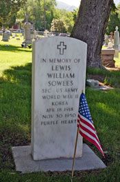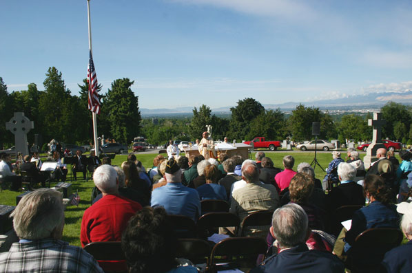 Diocesan Administrator Msgr. J. Terrence Fitzgerald offers a Memorial Day homily May 29 in Mount Calvary Cemetery in which he reminds those present the Catholic cemetery reflects the Church’s faith in a life beyond the one we are living here. Pointing to the surrounding graves Msgr. Fitzgerald spoke of the hope of life everlasting brought to Christians by Jesus Christ. The altar in the center of Mount Calvary Cemetery is surrounded by the graves of priests and sisters who have served long and faithfully in the Diocese of Salt Lake City. At right, a veteran of World War II and the Korean war’s grave is marked with a flag in honor of his sacrifice for the country. "In this time of war," Msgr. Fitzgerald said, "it is good to remember those who are in service to the country, those who have died, and those whose lives have been forever changed by the injuries the have suffered in Iraq and Afghanistan."