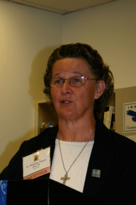 Sr. Madonna was primarily talking to catechists from parish Sunday school programs and teachers of religion in the school system. She told them as teachers they get their teacher’s guides and everything is outlined for them. But the real lesson is not how to teach a lesson, it is about touching the hearts, minds and souls of the students or people they are teaching, and making a connection of what they have heard in the Scripture no matter who is the author.