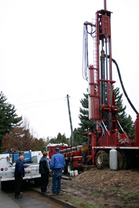 SALT LAKE CITY — "A well is under construction at Mount Calvary Catholic Cemetery in Salt Lake City. "We started drilling April 9, and struck water April 20," said Curt Rosentreter, Mount Calvary Catholic Cemetery director. "We struck water at 280 feet down. The drillers are now down 340 feet, and they will keep drilling looking for a flow of water. They are now getting a flow of 100 gallons an hour. They would like a little more to allow for a potential change in the water table to make sure there will be enough water in the event of a drought. They plan on digging 450 feet deep before they are finished." "One of the ongoing expenses of the cemetery has been providing culinary water for the cemetery’s acres of grass," said Vicar General Msgr. J. Terrence Fitzgerald. "For that reason we surveyed the possibility of digging a well on cemetery property. After some surveys and legal pursuits, water shares were purchased and authorization was obtained to dig the well." "We have been waiting a long time to dig this well," said Rosentreter, "In the spring of 2004, we were discussing long-term water costs, maintenance issues, and revenue, when the idea of the well came up. Since then water has become a major issue. "Water costs have almost quadrupled at this point, and have evolved into an important and current issue," said Rosentreter. "In Utah, as in many western states, you have to have water rights. We need a number of water rights to irrigate the 18 acres here at the cemetery, which are costly. It took a year and a half to two years to do that." Rosentreter said from there they had to apply to the State of Utah for permission to dig a well, which was a lengthy process in determining the impact of the well in this area. We filed the application, which took more time, as well as engaging a driller. "We were hoping to get started in February, but weather prevented the driller to free himself from other jobs so he could start on this job," said Rosentreter. "The water from the well will water the entire cemetery," said Rosentreter. "Even in dry years, we should have plenty of water available in terms of our capabilities. We will completely disengage from Salt Lake City’s culinary water system as part of this process. However, the cemetery buildings and facility will remain on city water. "Even though we will not be restricted as to when we can water, we will still want to restrict ourselves to nighttime watering, simply because that is the most efficient way to water. When you water during the day, the water does not sink in as far, and a lot of the water is lost through evaporation. "There are wells all around us," said Rosentreter. "Mount Olivet Cemetery has a well, the University of Utah has several wells, Salt Lake City Cemetery had a well, but it was more shallow, and a very old well. Being part of the Park District, they have better access to it than we do. But they now use culinary water. "We are going to be involved in supporting the driller with our backhoe and our staff," said Rosentreter. "We are also having to bring a new power line in to support the pumping station, and we will be participating in that in terms of trenching across the cemetery. "With those activities and the fact that the weather has pushed us back to a late start in our springtime activities in terms of getting the cemetery ready for Memorial Day, it is going to be helpful if families come up the week before Memorial Day and check their grave sites if they can, and help us by trimming around the headstones," said Rosentreter. "We are going to do everything we can to get these projects done, but I am concerned. "At the same time, we also have one irrigation water line that runs under the road above the circle and the altar in the cemetery, that needs to be removed," said Rosentreter. "That means we will have to pull up part of the road and put in a new water line, and then blacktop the road. So we have that going on as well. "This is out of character for us," said Rosentreter. "We are usually well into getting the grounds cleaned up and starting to put sod on the winter graves by now. So it will be difficult to get all of this done in four weeks and as ready as we would like to be for Memorial Day. It is the one day of the year when we like to have every aspect of the cemetery looking its best." Msgr. Fitzgerald said for a number of years, now, the Diocese of Salt Lake City has been implementing a long term strategy to enhance Mount Calvary Catholic Cemetery and to expand its capability to serve the needs of Utah’s Catholics. Two mausoleums, as well as a columbarium were constructed in order to provide additional burial sites for the remains of the faithful. "At the same time, areas of the grass have been replanted and new roadways and curbing were installed," said Msgr. Fitzgerald. "Some years earlier, a new marble altar at the center of the cemetery was built to replace the previous structure. "Two years ago the main entrance was realigned and the deteriorating gate was replaced with a more modern structure," said Msgr. Fitzgerald. "At the same time a legal effort was begun to repossess previously purchased graves where there had been no contact with survivors for more than 50 years."